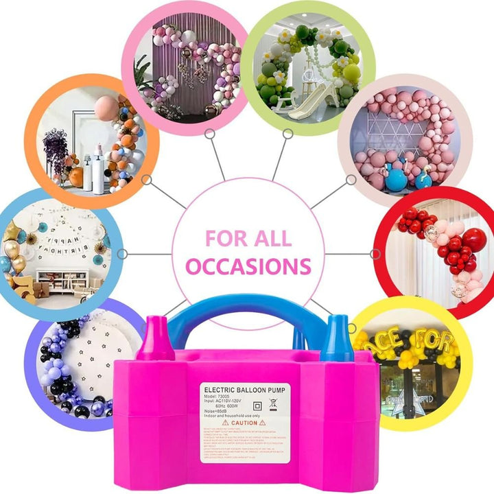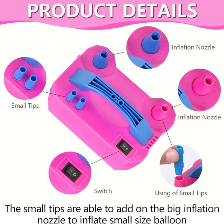 Make party prep quick and effortless with this portable electric balloon pump. Designed with dual nozzles, it lets you inflate multiple balloons in seconds—perfect for birthdays, weddings, baby showers, and holiday events. Lightweight and easy to carry, this pump saves time and energy so you can focus on decorating and celebrating.