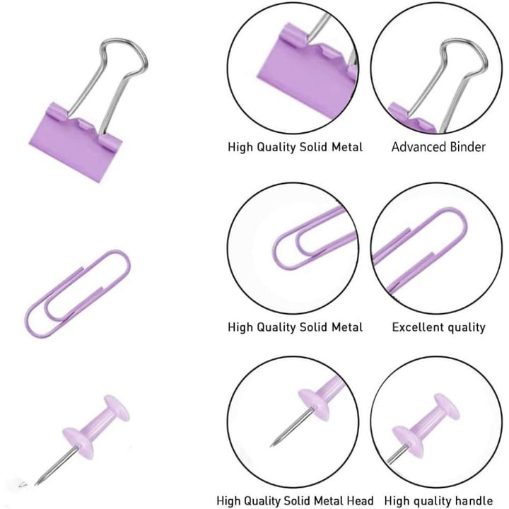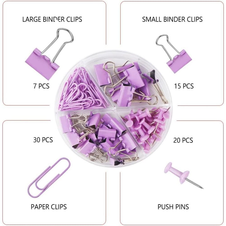 Brighten your workspace with the bold, clean look of this Purple Metal Paper Clips & Binder Clips Set. Whether you're filing important papers, managing your planner, or setting up your study space, these vibrant clips make organizing a joy—not a chore.